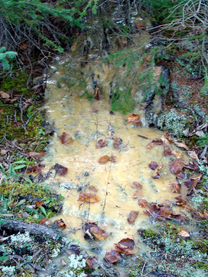 Photo #1 Déversements chimiques par Pétrolia à Anticosti. Eau de forage rejetée dans la nature. Le MDDEP dort au gaz sur la Côte-Nord. Identification après plainte d'un citoyen : DD-2000, sécuritaire pour l'environnement, mais doit-être manipulé avec des gants !!!